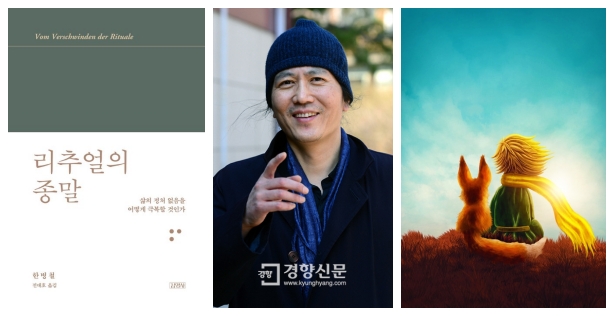 여우는 어린 왕자가 늘 같은 시간에 자신을 찾아오기를, 어린 왕자의 방문을 리추얼로 만들기를 바란다. 어린왕자는 리추얼이 뭐냐고 묻는다. 그러자 여우가 대답한다. "그건 어떤 날을 다른 날과 구별해주는 무언가, 어던 시간을 다른 시간과 구별해주는 무언가야." 리추얼은 시간을 다뤄 집안에 들이기를 이뤄내는 기술이다. 리추얼은 세계-안에-있음을 집안에-있음으로 만든다. 시간안에서 리추얼은 공간 안에서 사물과 같다. 리추얼은 시간을 구조화함으로써 삶을 안정화 한다. 리추얼은 시간 건축물이다. 시간을 구조화함으로써 리추얼은 시간을 거주 가능하게 만든다. 즉, 집처럼 드나들 수 있게 만든다. 오늘날 시간은 견고한 짜임새가 없다.