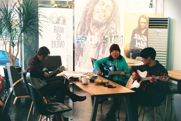 기타학과는 개인수업으로 진행하기도 하고, 그룹으로 하기도 합니다. 기타수업이지만 음악수업에 가깝습니다. 지구에 태어나 안 듣고 죽으면 억울할 명반을 소개하기도 하고, 당대의 시대정신이 깃든 훌륭한 현재진행형 밴드의 새앨범을 소개하기도 합니다. 또는 김민기, 한대수, 정태춘 처럼 한국 모던포크의 정신이 된 분들의 음악을 소개하기도 합니다.