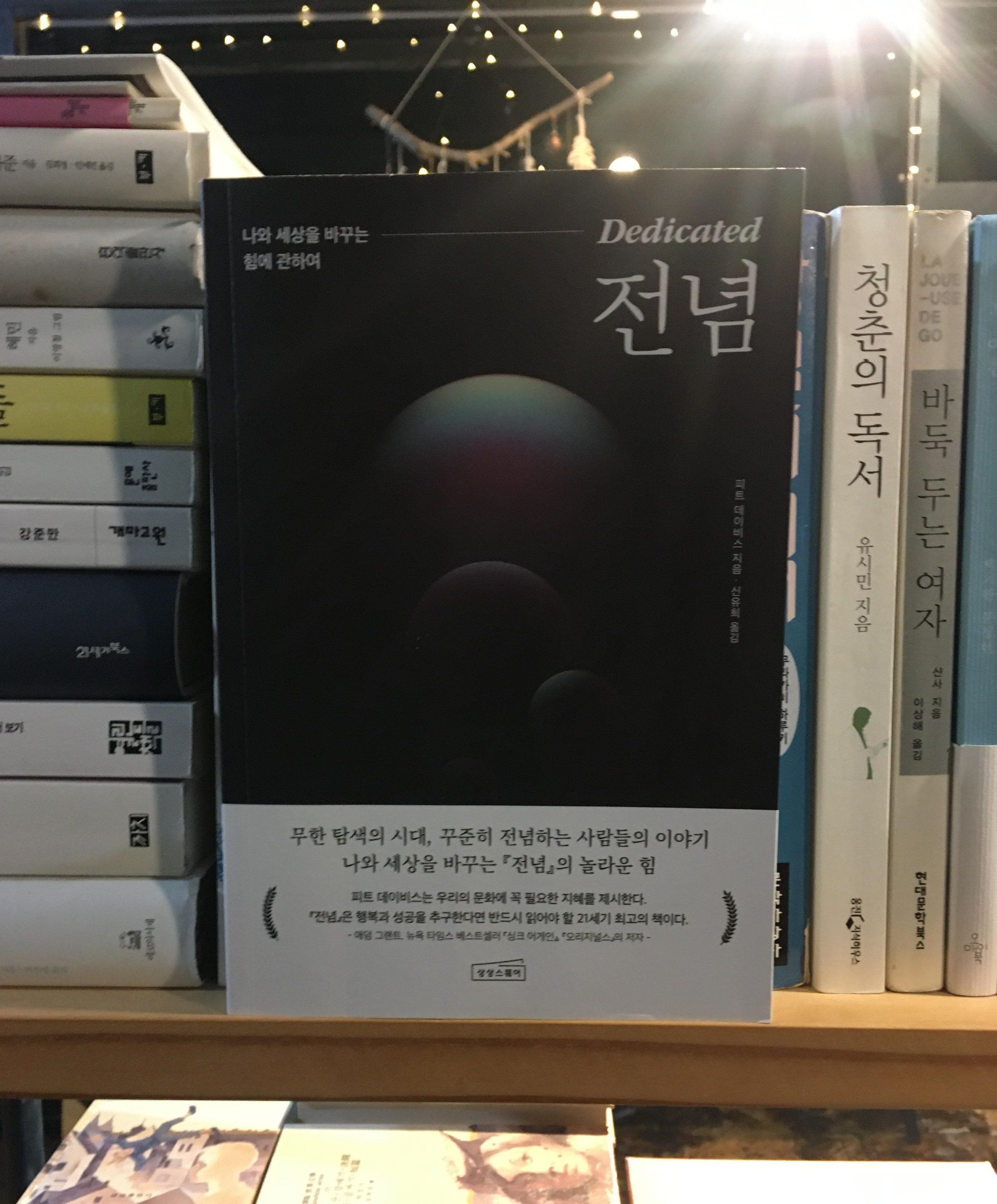 저 글을 어디에선가(아마도 인친의 게시글에서) 보았고 인상깊었기에 읽어야지 했지만 정보가 쉽게 휘발되는 시대를 살다 보니 잊고 있었다. 그러다가 단골손님이 피트 데이비스 <전념>을 들고 들어와 읽고 있는 모습을 보았다. "아 이 책 읽으려고 했는데... 책 좋죠?", "아 그러셨어요? 그럼 사장님 먼저 읽으세요! 저는 일이 바빠서 한동안 책 읽을 시간이 없을거 같아요."